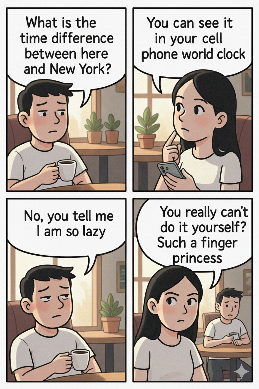 Finger princess: Someone who dosen’t look things up on their own but always asks other people about things.